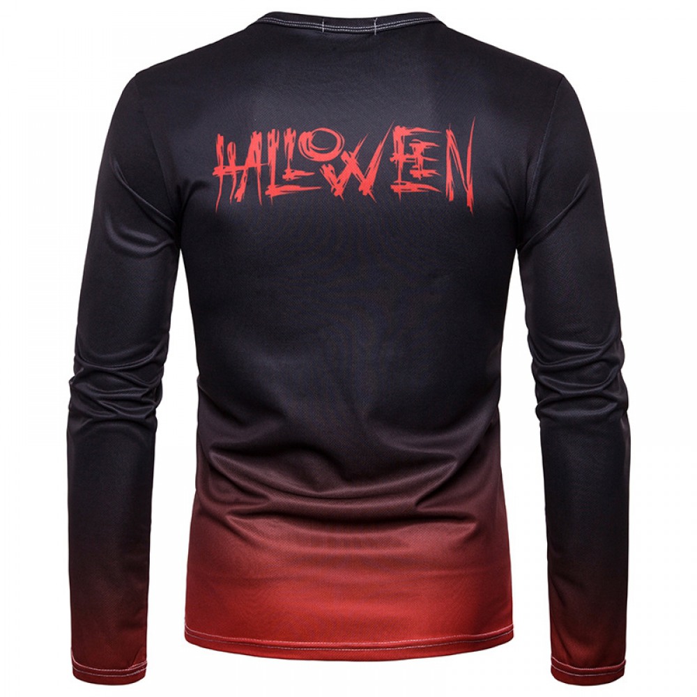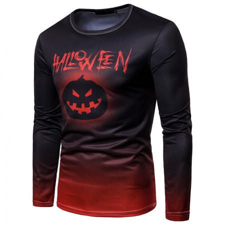 Explosive Halloween Printed Pumpkin Head Printed Long Sleeve Round Neck T-Shirt