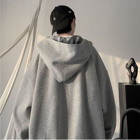 Fashion Men's Stitched Plaid Hooded Sweatshirt Trendy Cardigan Jacket