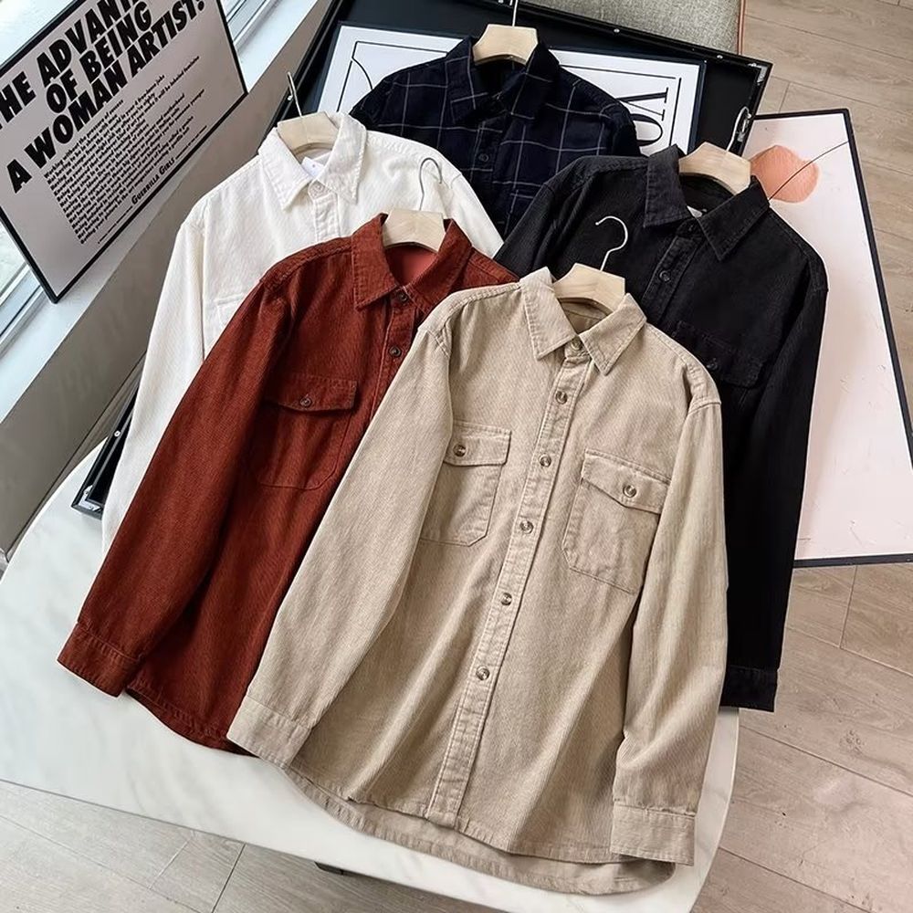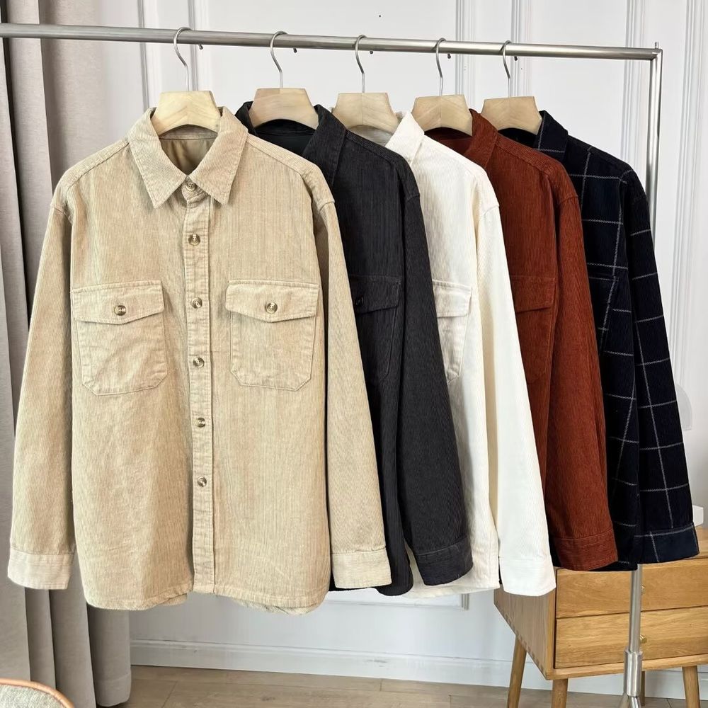 Men's Corduroy Work Plaid Shirt Jacket