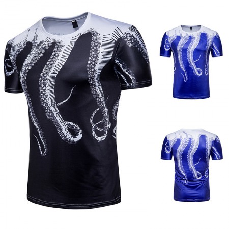 Men's Shirt Marine Fresh Wind Printing Octopus 3D Printing T-Shirt Short Sleeve