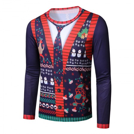 New 3D Personality Printing Fashion Men's Christmas Long-Sleeved T-Shirt