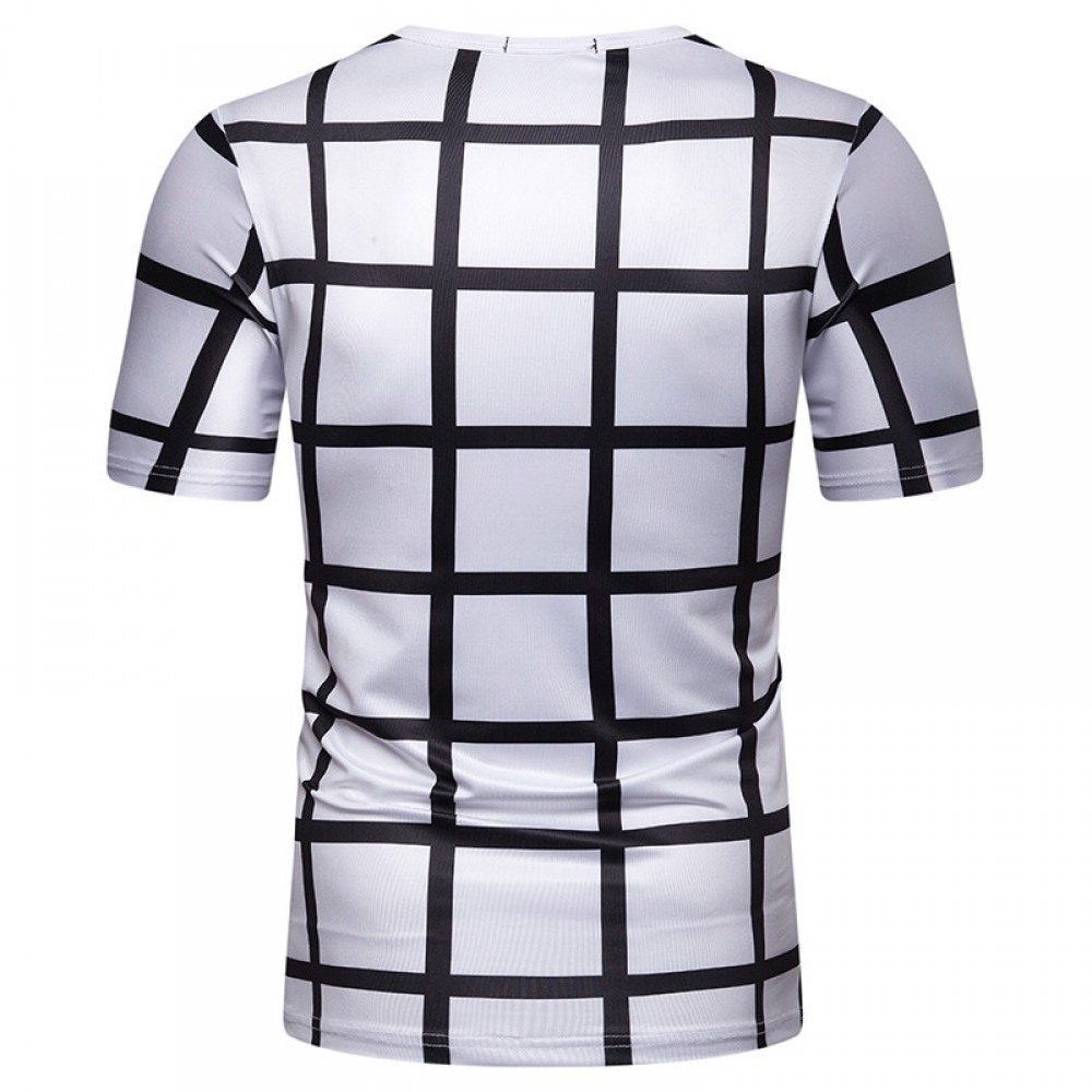 New Summer Men's Plaid Print Short-Sleeved T-Shirt