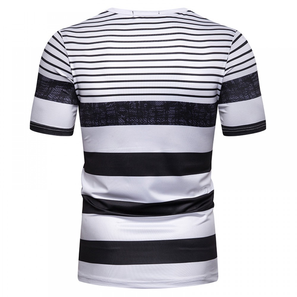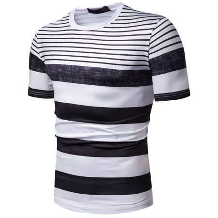 Black and White Strip Stitching Design Men's Casual Fashion T-Shirt