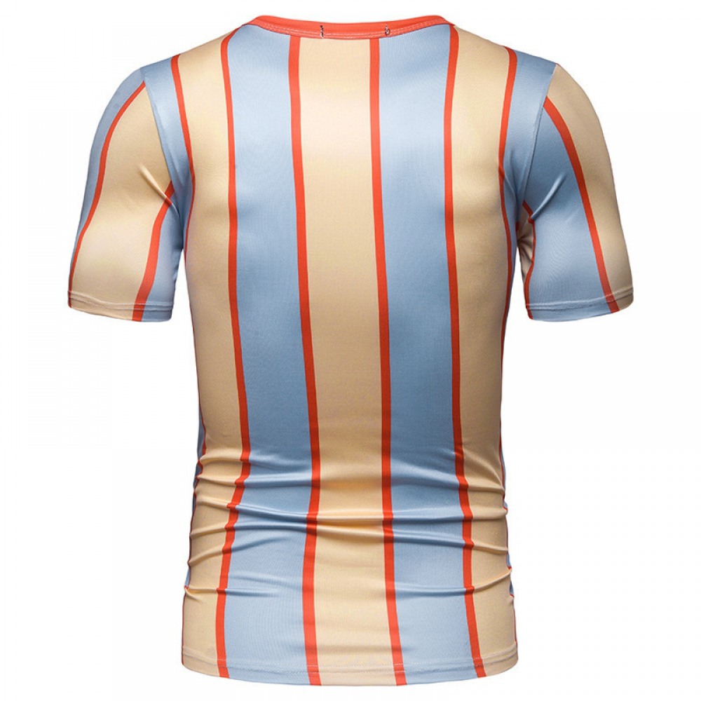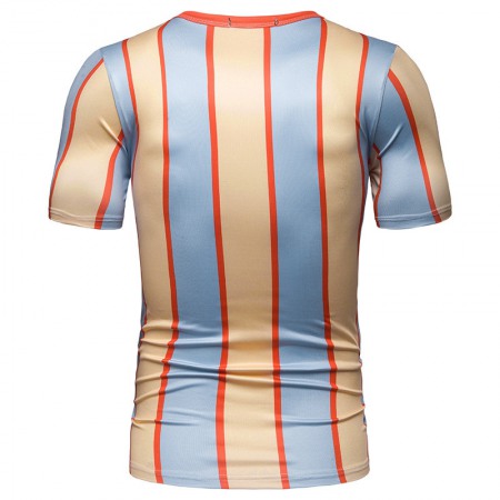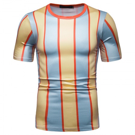 New Summer Men's Short-Sleeved T-Shirt Men's Contrast Striped Slim Casual T-Shirt
