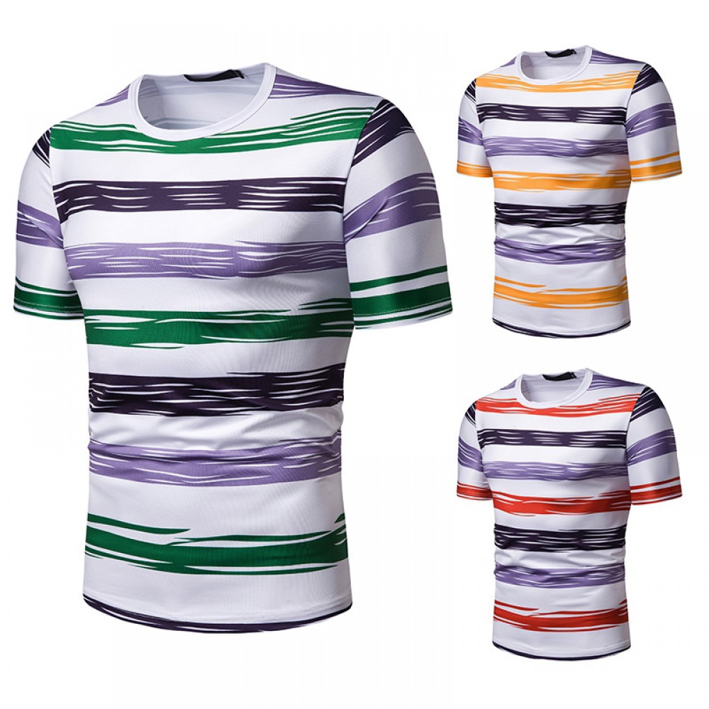 New Summer Men's Short-Sleeved T-Shirt Mens Contrast Striped Slim-Fit Casual T-Shirts
