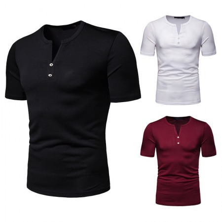 New Summer Thin High Stretch Men's Short Sleeve V-Neck T-Shirt